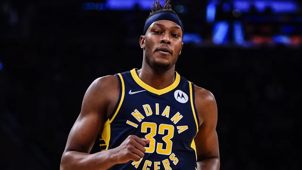 Myles Turner wears jersey number 33 for the Indiana Pacers.