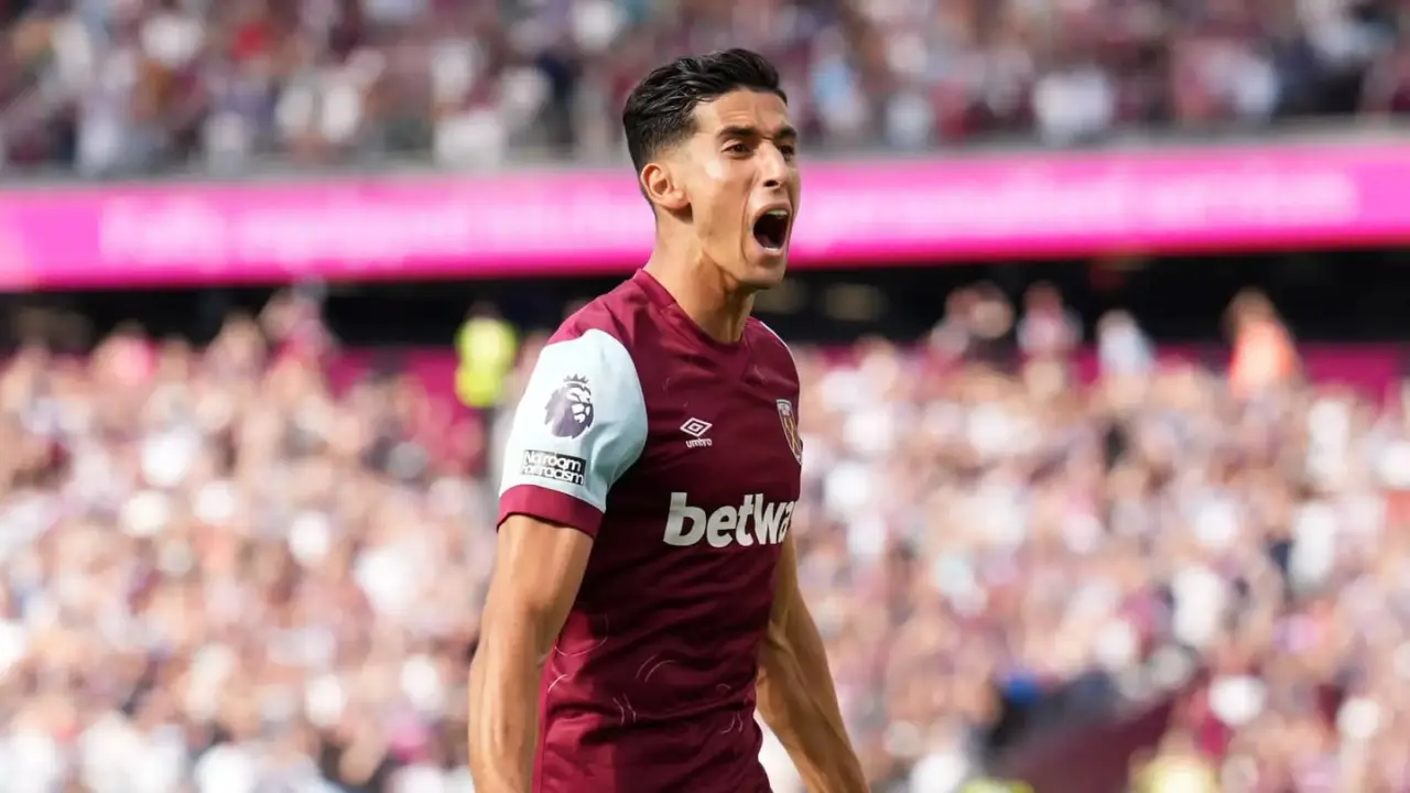 Nayef Aguerd, the professional footballer who plays as a defender for West Ham United in the Premier League, wears Adidas Predator Accuracy+ soccer cleats in the 2023-2024 season.
